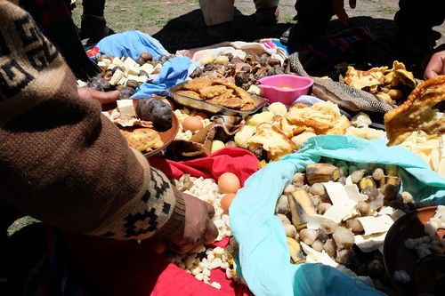 Este aspecto social del trabajo muchas veces es ignorado en los trabajos asalariados, en los que la acumulación mercantil capitalista es el único objetivo utilitarista que dinamiza el intercambio entre los seres humanos. En este sentido, como muestra el caso del apthapi (reunión de alimentos), donde todos comparten coca, alcohol y comida, aportando sus alimentos al centro de la reunión, podría decirse que en los Andes la sociabilidad se constituye por el acto de compartir el fruto de los trabajos realizados de antemano, contradiciendo en la praxis la tesis del “hombre moderno”. Consideramos que esta forma de compartir los bienes obtenidos a partir del trabajo tiene estrecho vínculo con el concepto de “comunismo de base” de David Graeber, puesto que los comuneros aportan y consumen siguiendo el principio de “cada cual, según sus posibilidades, a cada cual según sus necesidades” (Graeber, 2012: 128).